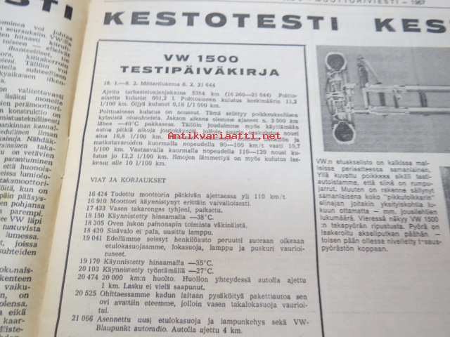 Moottoriviesti 1967 nr 2, sis. mm. seur. artikkelit / kuvat / mainokset; Fiat 1100, Kestotesti VW 1500 - Volkswagen Variant - Opel Kadett, Fiat 124 3kk koeajoraportt
