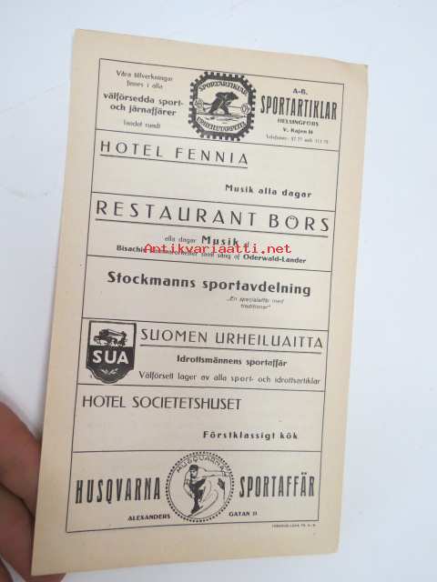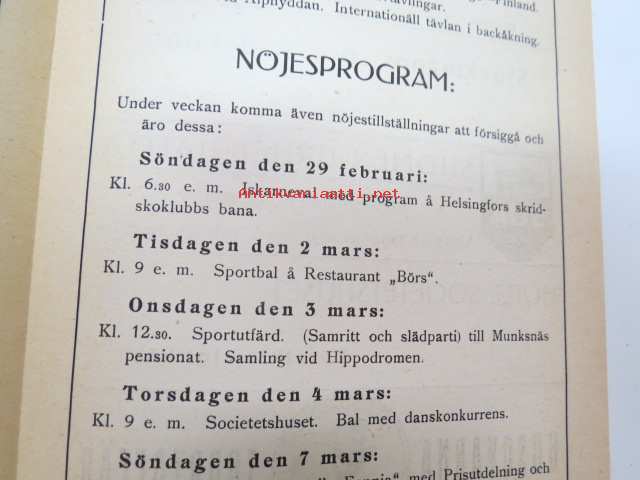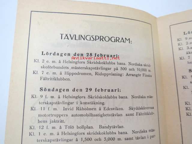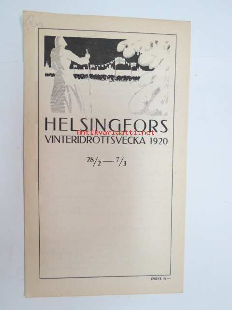 Helsingfors Vinteridrottvecka 1920 -broschyr -esite / ohjelma ruotsinkielinen