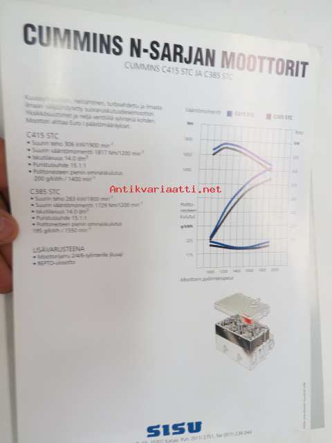 Sisu Cummins N-sarja 415 STC, 385 STC moottori -myyntiesite / sales brochure