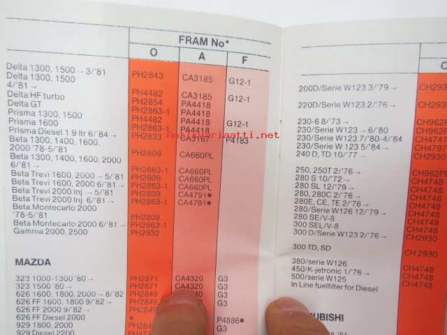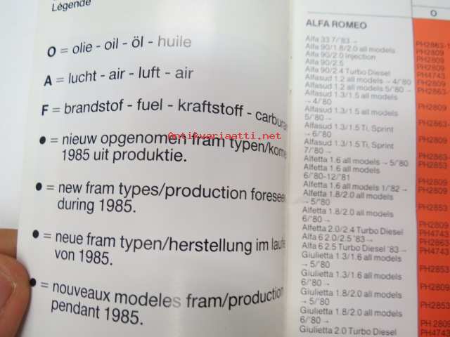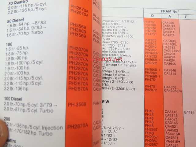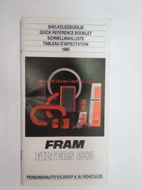 Fram Filters 1985 Quick reference booklet -suodattimien pikahakutaulukko