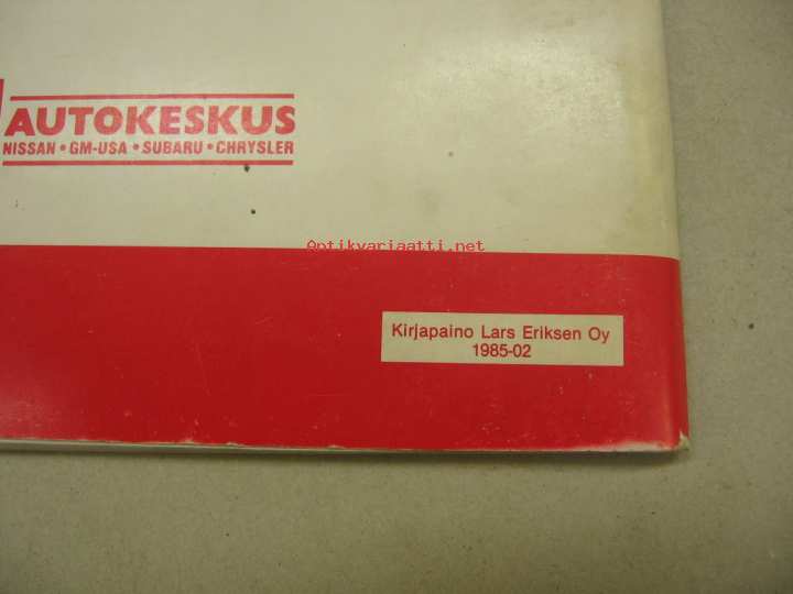 | Saatavilla | 1 kpl | | Julkaisuvuosi | 1985 | | Sivuja | 88 | | Kunto | K3 | | Sidonta/painoasu | Nidottu (pehmeäk.) | | Kielet | Suomi |