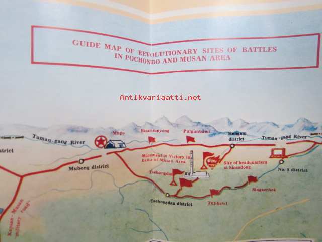 Guide map of Revolutionary Sites of Battles in Pochonbo and Musan Area -Pohjois-Korealaisten kuuluisien taistelupaikkojen opaskartta, englanninkielinen