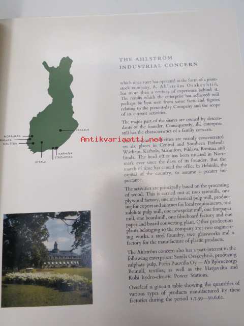 A. Ahlström Oy - A Description of the company today and it´s various forms of activity, the result of a century-long development -Ahlströmin monipuolisen teollisuuden ja toiminnan esittelyä