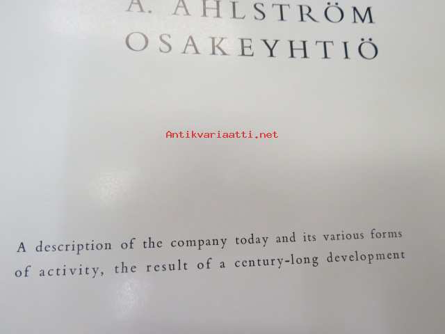A. Ahlström Oy - A Description of the company today and it´s various forms of activity, the result of a century-long development -Ahlströmin monipuolisen teollisuuden ja toiminnan esittelyä
