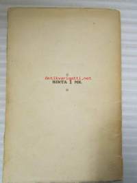 | Saatavilla | 1 kpl | | Julkaisuvuosi | 1911 | | Sivuja | 142 | | Kunto | K2 | | Sidonta/painoasu | Nidottu (pehmeäk.) | | Kielet | Suomi |