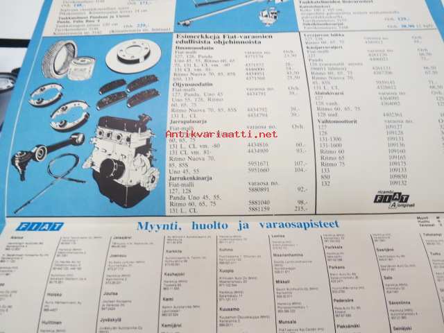 Fiat tarvikkeet ja varaosat 1984 -myyntiesite