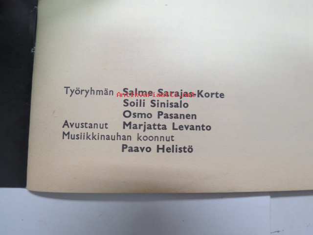 | Saatavilla | 1 kpl | | Julkaisuvuosi | 1972 | | Sivuja | 26 | | Painos | 1. | | Kunto | K3 | | Sidonta/painoasu | Nidottu (pehmeäk.) | | Kielet | Suomi |