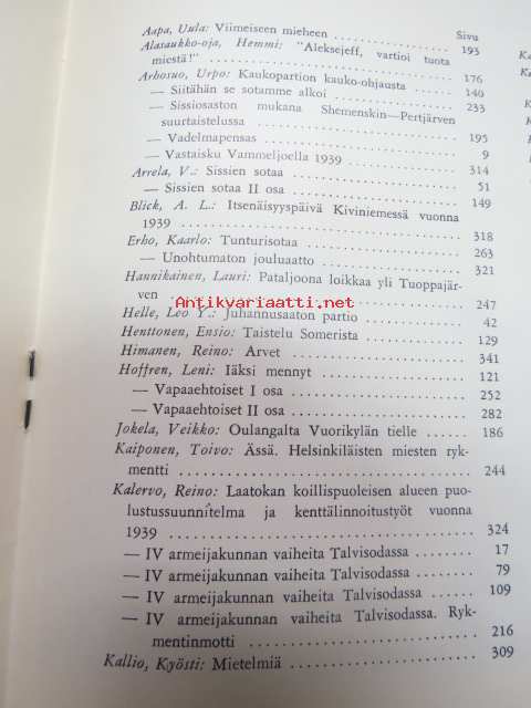 Kansa Taisteli 1959 nr 11-12, sis. mm. seur. artikkelit; Valo Nihtilä - Viivytystaistelut Kannaksella 1939, Urho Arhosuo - Vastaisku Vammeljoella 1939, A.L. Blick