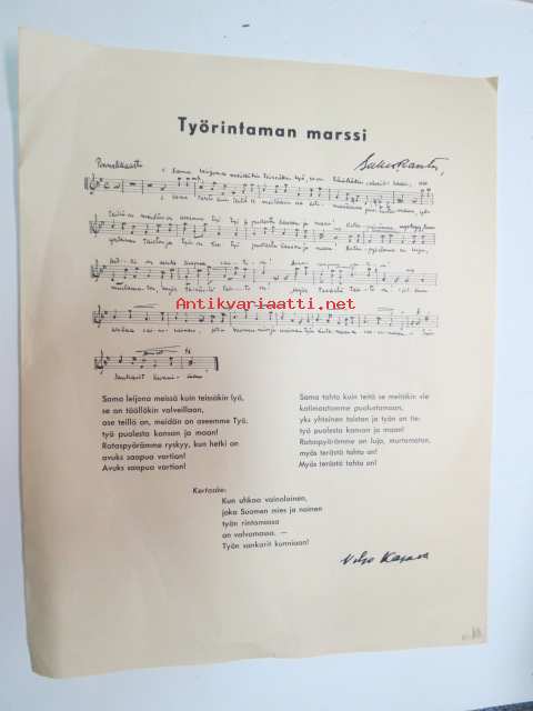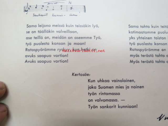 Työrintaman marssi Sulho Ranta / Viljo Kajava -nuotit ja sanat