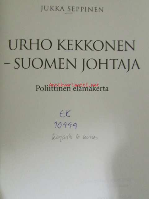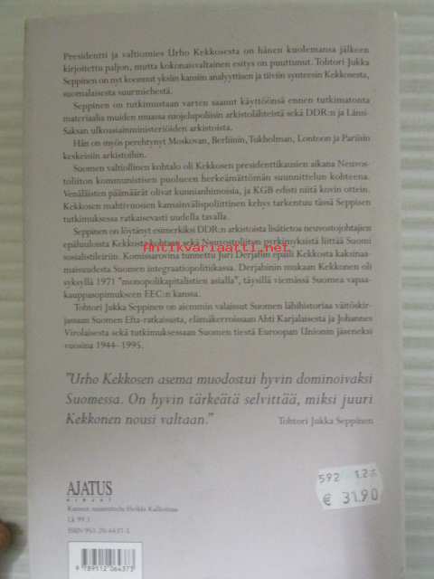 | Saatavilla | 1 kpl | | Julkaisuvuosi | 2004 | | Sivuja | 942 | | Painos | 1 | | Kunto | K3 | | Sidonta/painoasu | Sidottu (kansipaperit) | | ISBN | 951-20-6437-5 | | Kielet | Suomi |