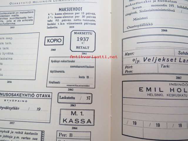Osakeyhtiö Helsingin Leimasintehdas, 193718 x 25 cm.