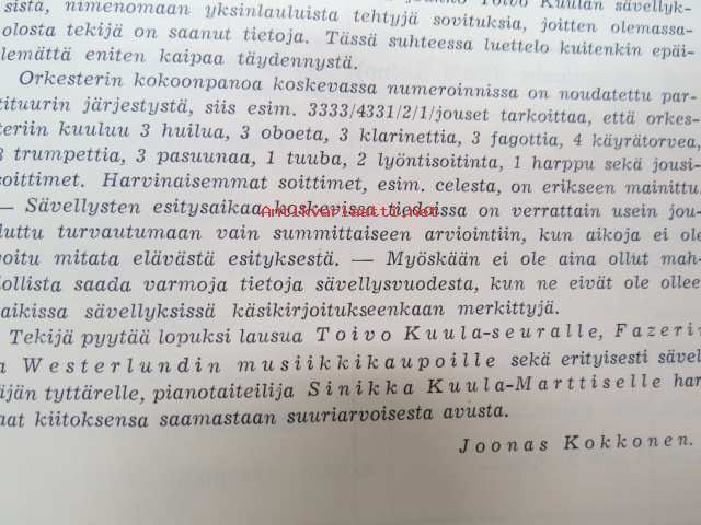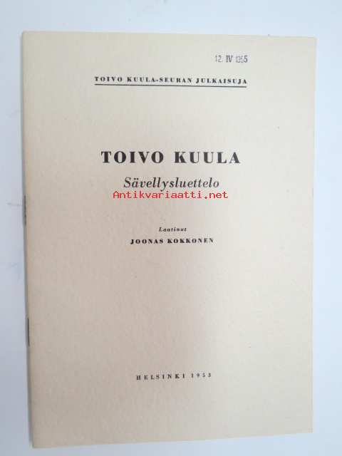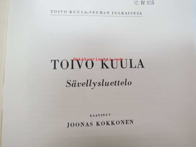 Joonas Kokkonen, Toivo Kuula-seura, 195315 x 21 cm.
