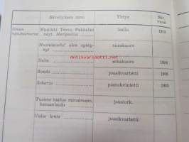 | Saatavilla | 1 kpl | | Julkaisuvuosi | 1953 | | Sivuja | 36 | | Painos | 1. | | Kunto | K3 | | Sidonta/painoasu | Nidottu (pehmeäk.) | | Kielet | Suomi |