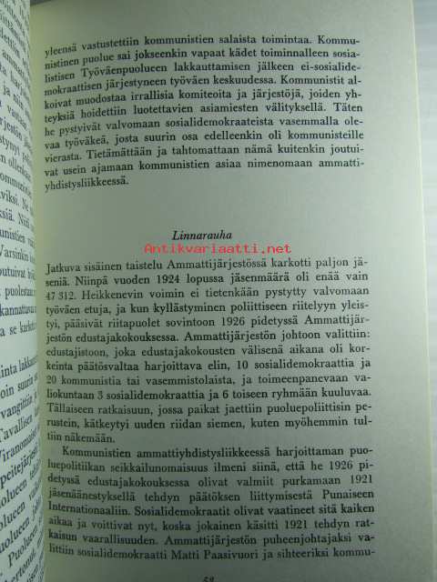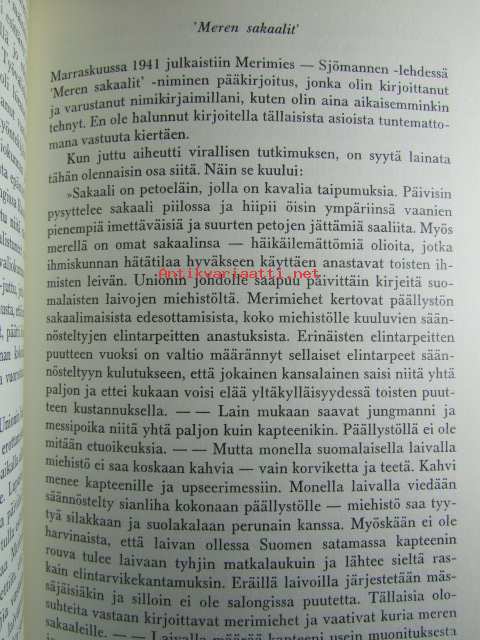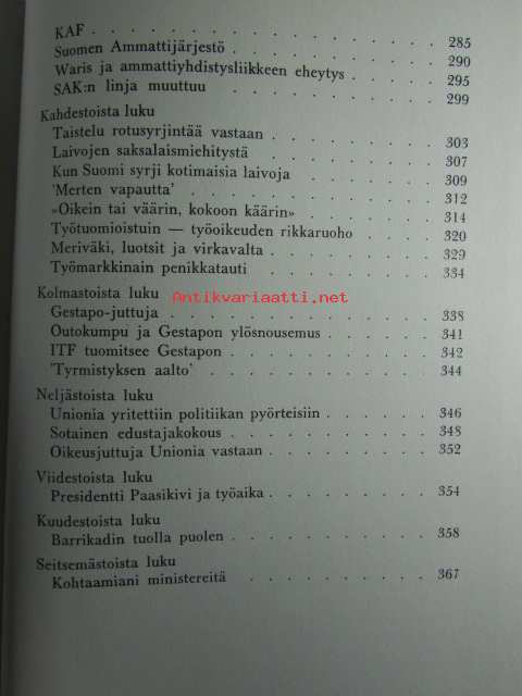| Saatavilla | 1 kpl | | Julkaisuvuosi | 1967 | | Sivuja | 377 | | Painos | 1. | | Kunto | K3 | | Sidonta/painoasu | Sidottu (kovak.) | | Kielet | Suomi |