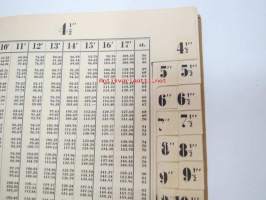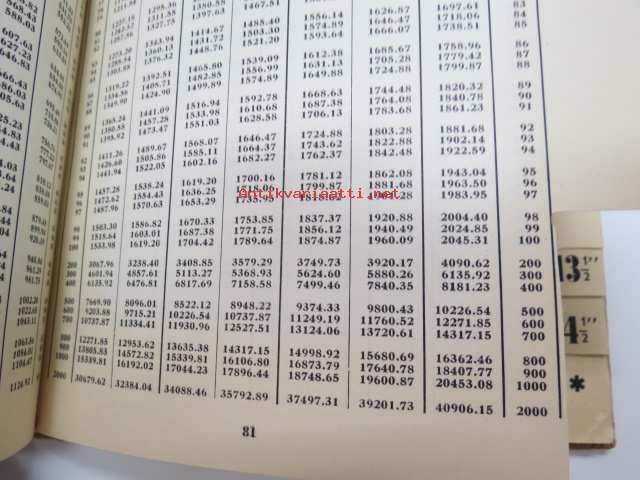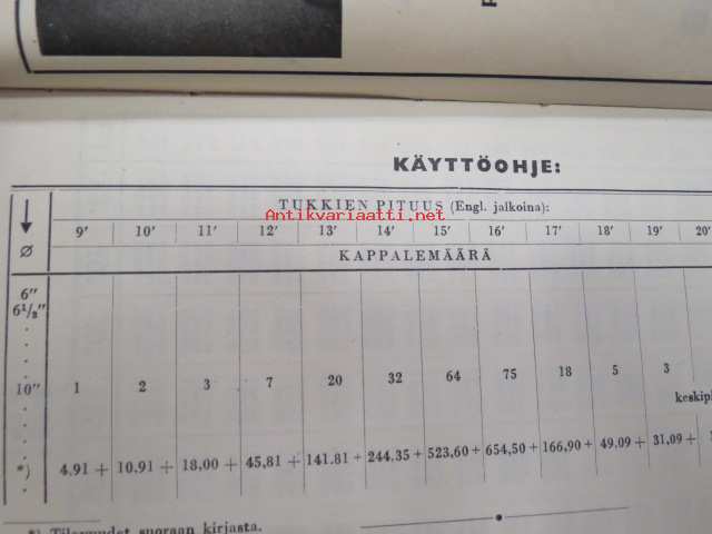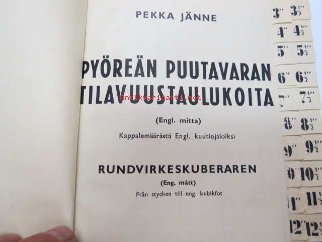 Pyöreän puutavaran tilavuustaulukoita (Engl. mitta) Kappalemäärästä Engl. kuutiojaloiksi - Rundvirkeskuberaren (Eng. mått) Från stycken till eng. kubikfot