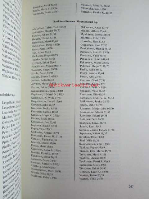 | Saatavilla | 1 kpl | | Julkaisuvuosi | 1971 | | Sivuja | 271 | | Painos | 1. | | Kunto | K3 | | Sidonta/painoasu | Kuvitettu kovakantinen | | Kielet | Suomi |