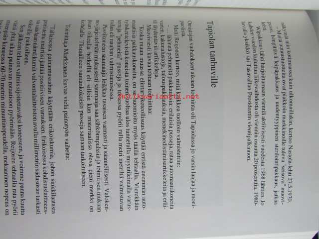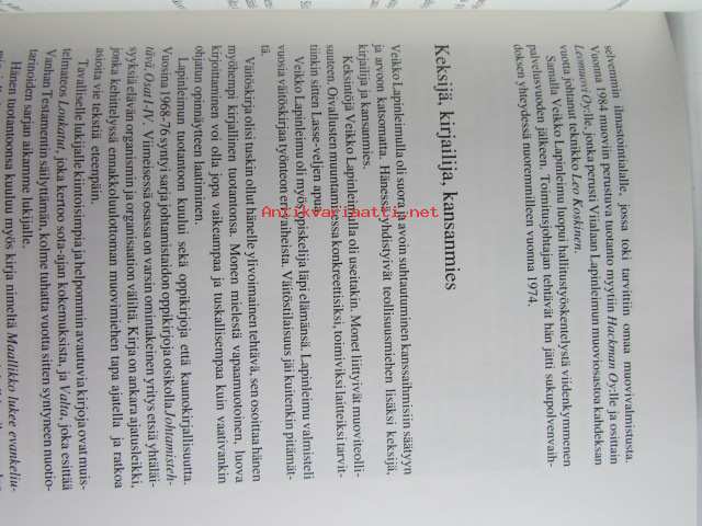 | Saatavilla | 1 kpl | | Julkaisuvuosi | 1990 | | Sivuja | 325 | | Painos | 1 | | Kunto | K3 | | Sidonta/painoasu | Sidottu (kovak.) | | ISBN | 951-9271-23-6 | | Kielet | Suomi |
