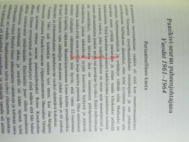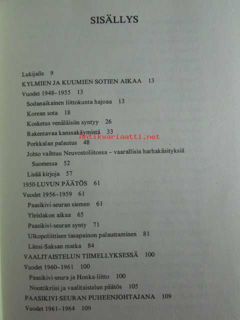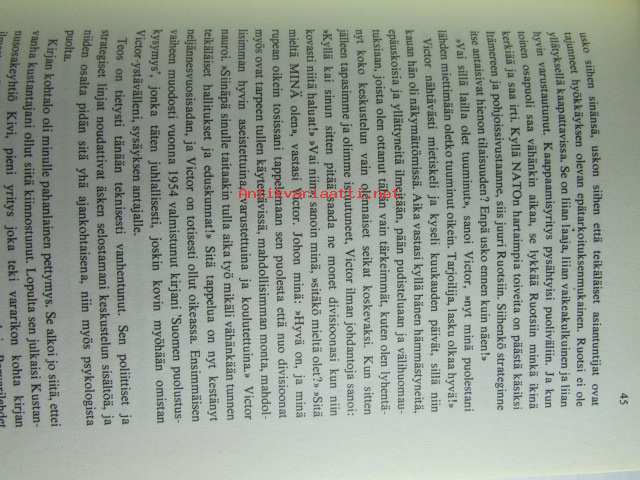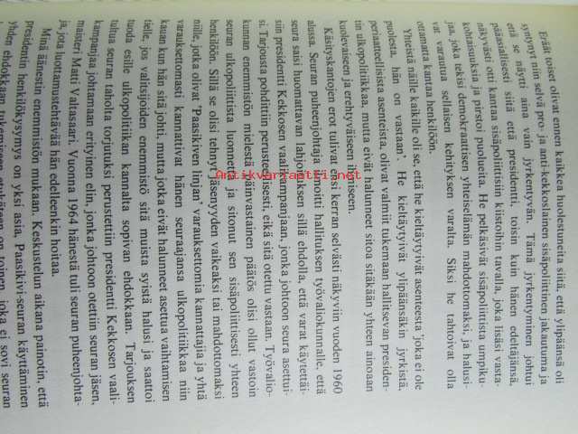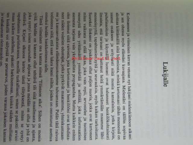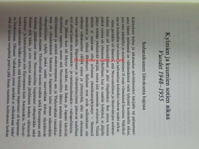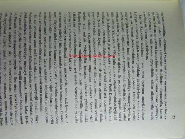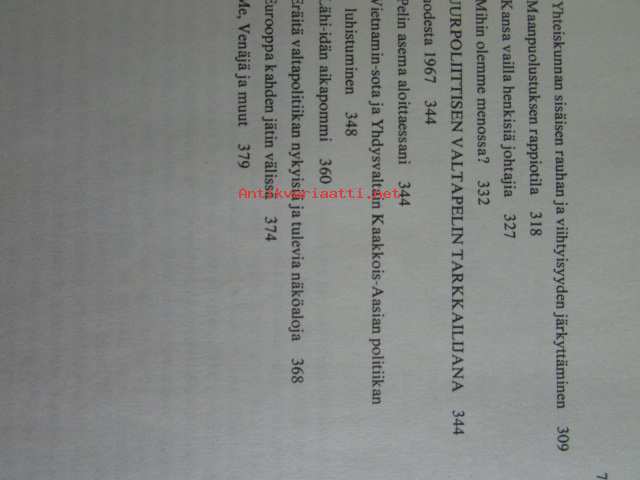 | Saatavilla | 1 kpl | | Julkaisuvuosi | 1975 | | Sivuja | 381 | | Painos | 2. | | Kunto | K3 | | Kansipaperi K2 kulunut hieman | | Sidonta/painoasu | Sidottu (kansipaperit) | | ISBN | 951-1-02117-6 | | Kielet | Suomi |