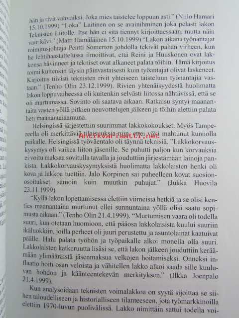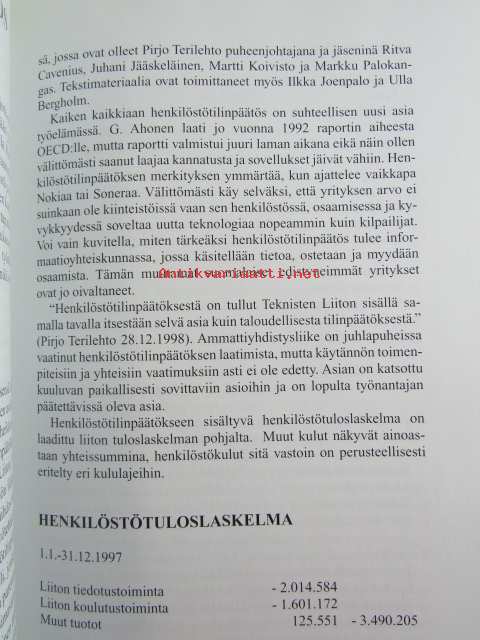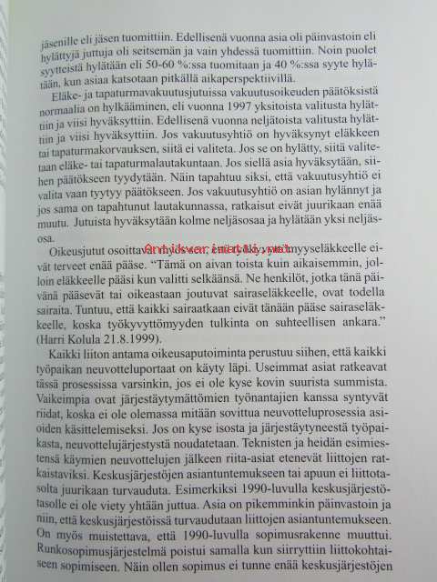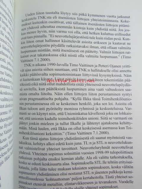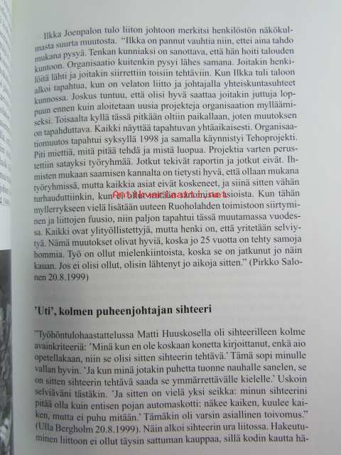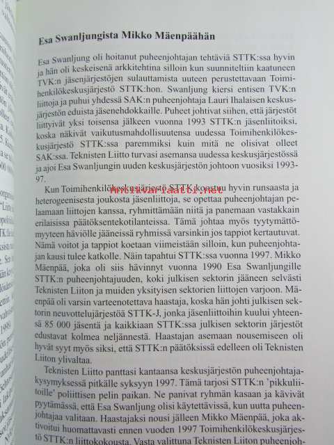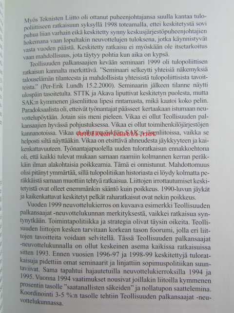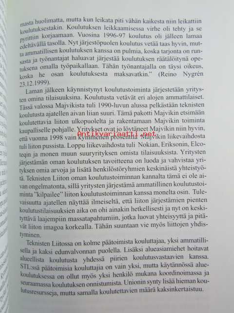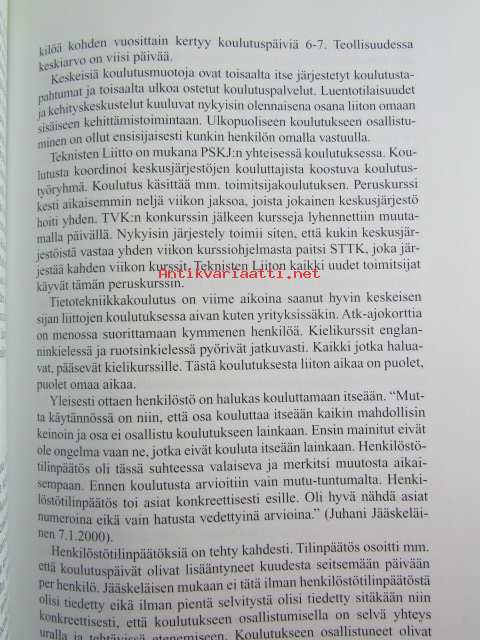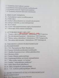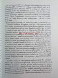 | Saatavilla | 1 kpl | | Julkaisuvuosi | 2000 | | Sivuja | 320 | | Painos | 1 | | Kunto | K3 | | Muutamilla sivuilla tussimerkintöjä katso kuvasta paremmin | | Sidonta/painoasu | Sidottu (kovak.) | | ISBN | 951-9408-99-1 | | Kielet | Suomi |
