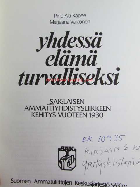 Yhdessä elämä turvalliseksi Suomen ammattiyhdistysliikkeen kehitys vuoteen 1930