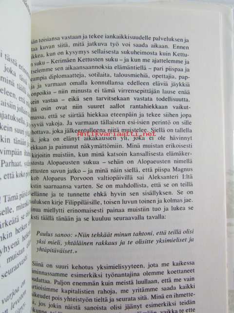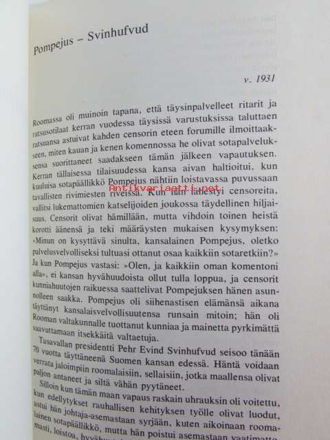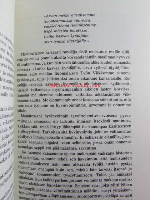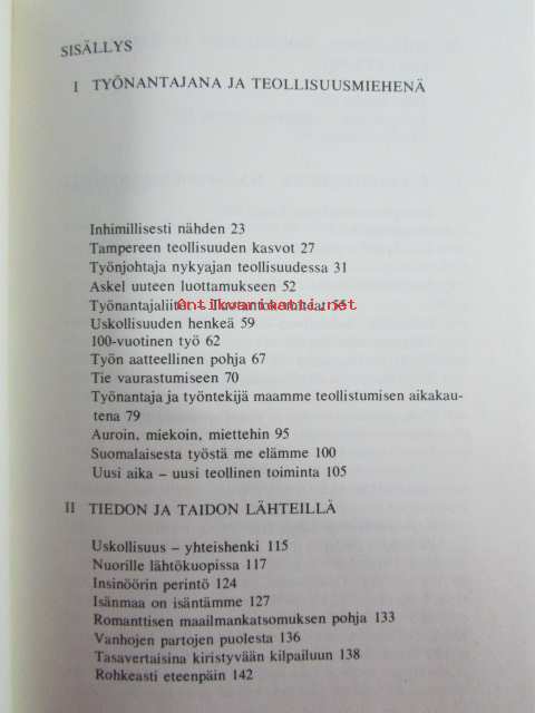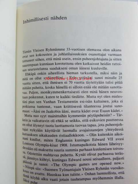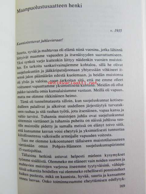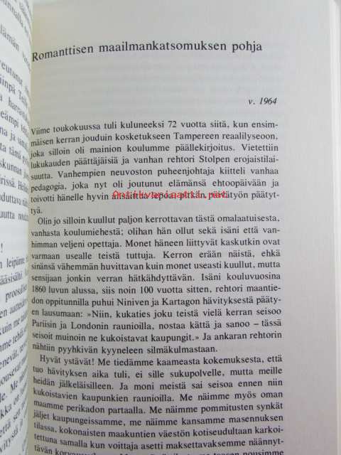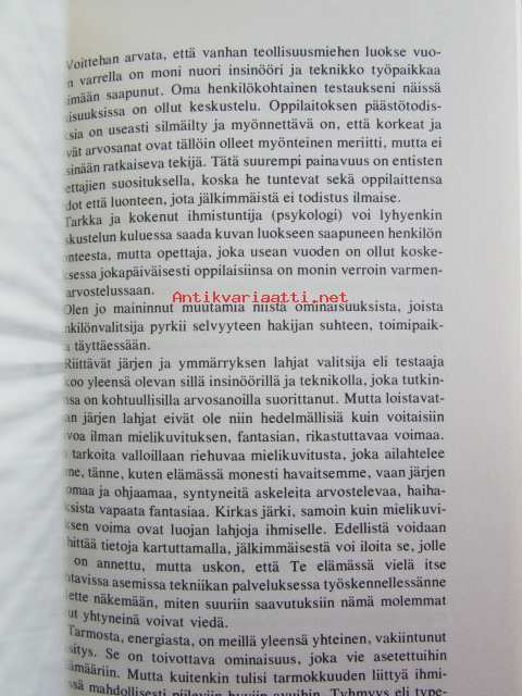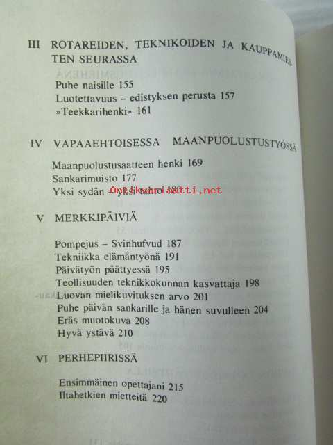 | Saatavilla | 1 kpl | | Julkaisuvuosi | 1977 | | Sivuja | 223 | | Painos | 1. | | Kunto | K3 | | Sidonta/painoasu | Sidottu (kansipaperit) | | ISBN | 951-9240-20-9 | | Kielet | Suomi |