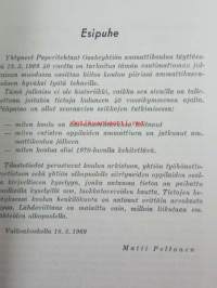 | Saatavilla | 1 kpl | | Julkaisuvuosi | 1969 | | Sivuja | 115 | | Kunto | K3 | | Sidonta/painoasu | Nidottu (pehmeäk.) | | Kielet | Suomi |