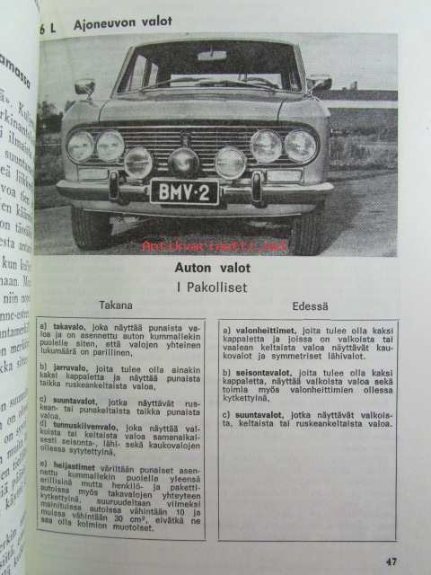 | Saatavilla | 1 kpl | | Julkaisuvuosi | 1970 | | Sivuja | 165 | | Kunto | K2 | | sivut irronneet mutta tallella ( liimaus pettänyt) | | Sidonta/painoasu | Nidottu (pehmeäk.) | | Kielet | Suomi |