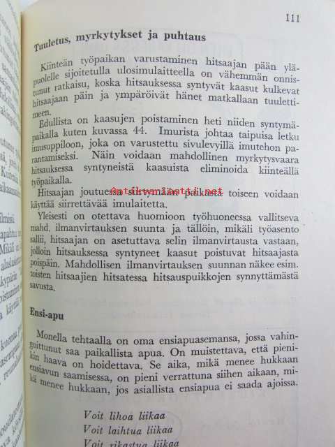 Hitsauksen aiheuttama palon- ja tapaturmanvaara - Kauppa- ja teollisuusministeriön ammattikasvatusosaston tarkastama ja hyväksymä oppikirja