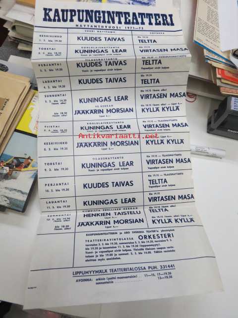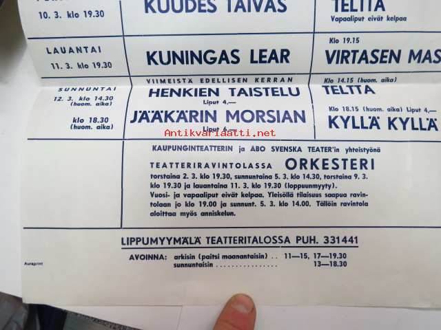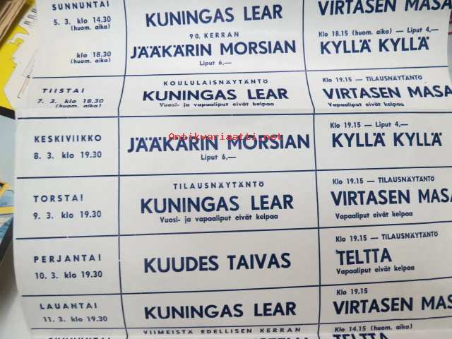 Turun kaupunginteatteri näytäntövuosi 1971-72 -maaliskuun näytännöt, mainosjuliste