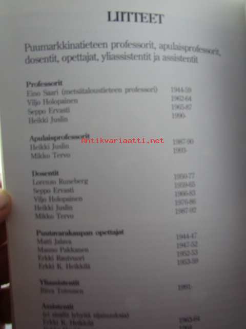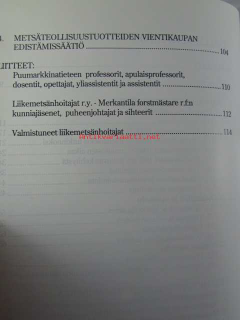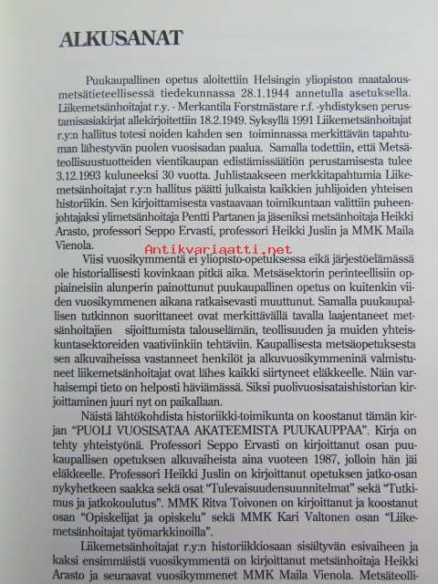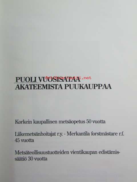 Puoli vuosisataa akateemista puukauppaa - Korkein kaupallinen metsäopetus 50 vuotta. Liikemetsänhoitajat r.y. 45 vuotta. Metsäteollisuustuotteiden vientikaupan edistämissätiö 30 vuotta