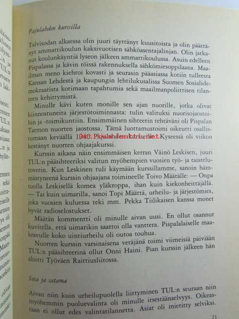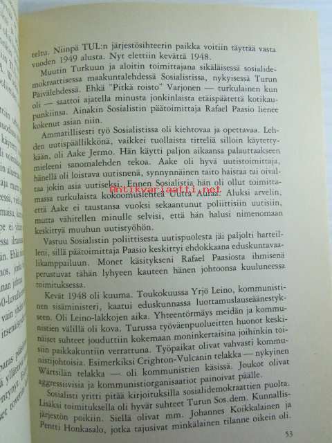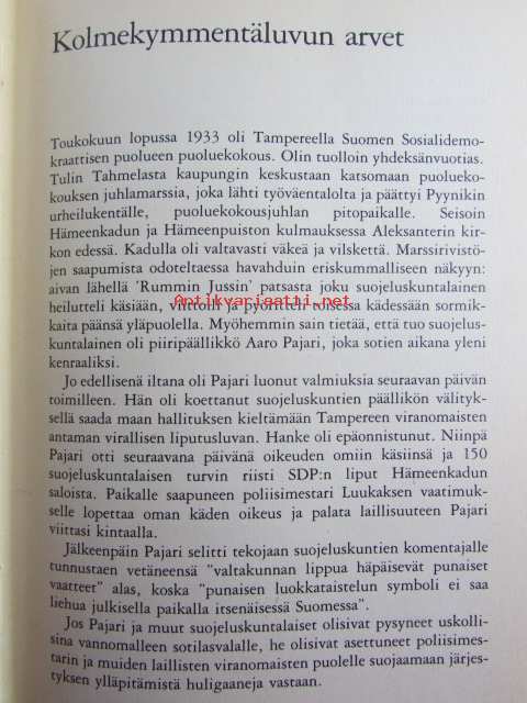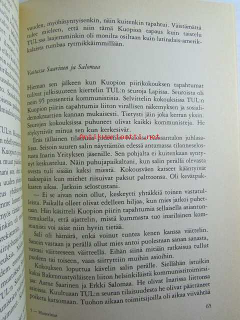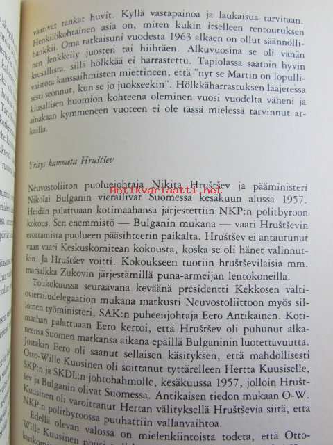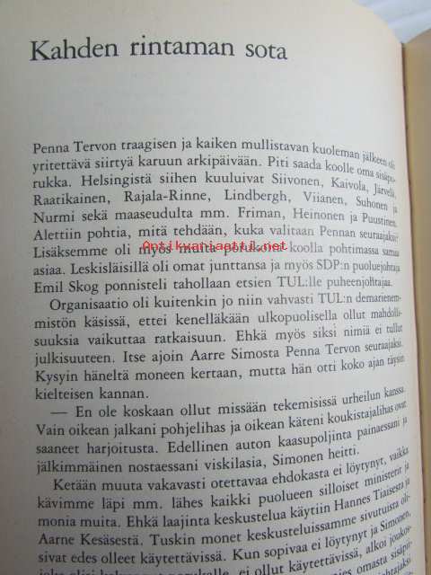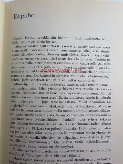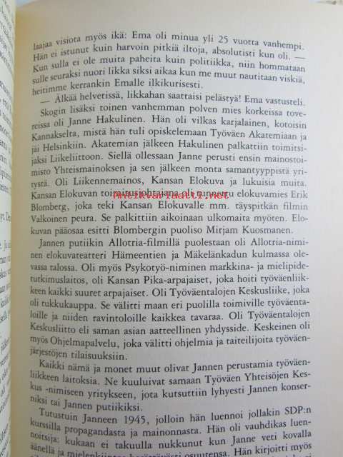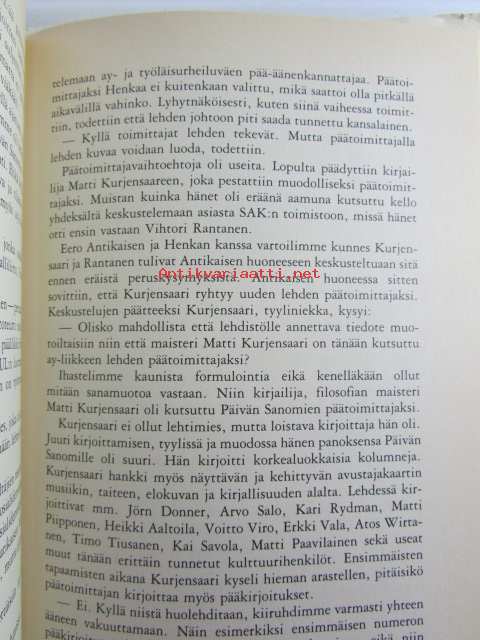 | Saatavilla | 1 kpl | | Julkaisuvuosi | 1982 | | Sivuja | 351 | | Kunto | K2 | | Sidonta/painoasu | Sidottu (kansipaperit) | | ISBN | 951-30-5492-6 | | Kielet | Suomi |
