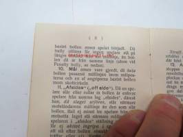 | Saatavilla | 1 kpl | | Julkaisuvuosi | 1915 | | Sivuja | 20 | | Painos | 1. | | Kunto | K3 | | Sidonta/painoasu | Nidottu (pehmeäk.) | | Kielet | Ruotsi |
