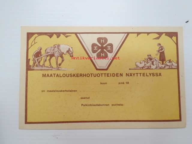 4-H Maatalouskerhotuotteiden näyttelyssä... -kunniakirja, käyttämätön