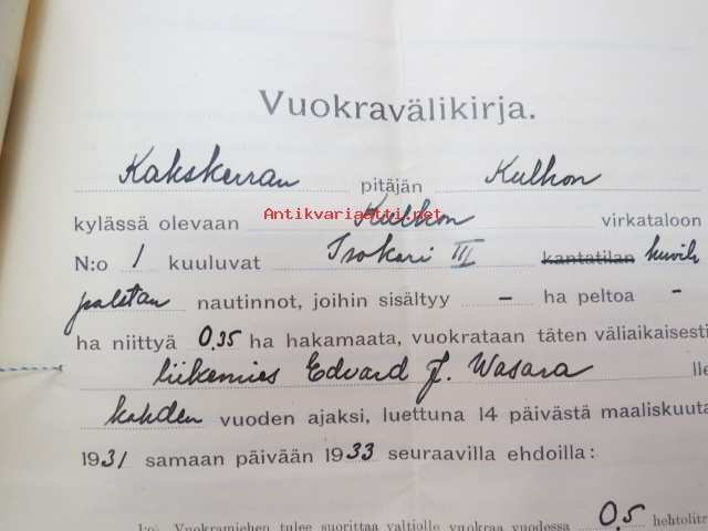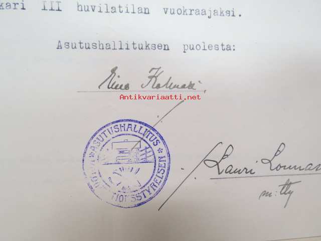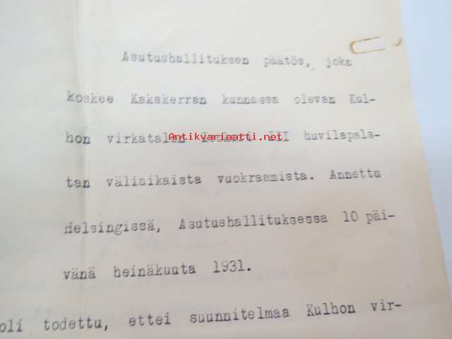 Asutushallituksen päätös, joka koskee Kakskerran kunnassa olevan Kulhon virkatalon Isokari III huvilapalstan väliaikaista vuokraamista.... -asiakirja