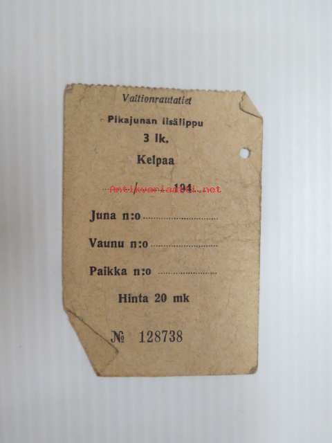 Pikajunan lisälippu 3.lk 194?