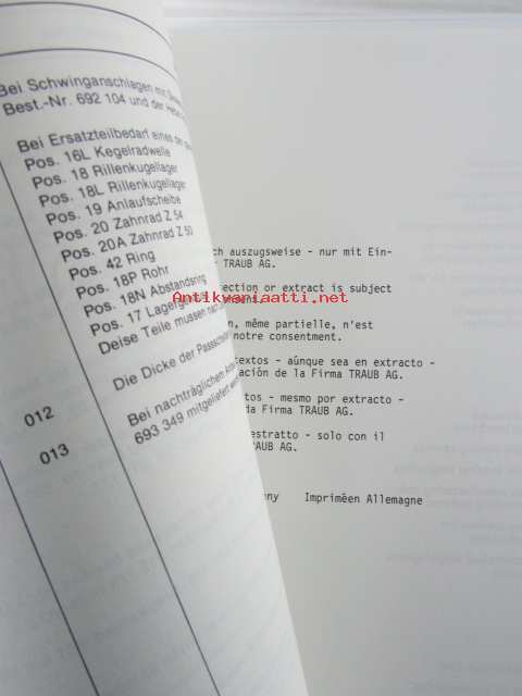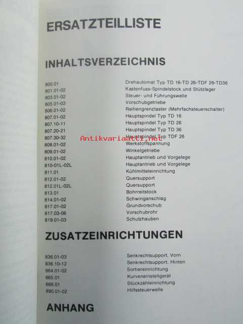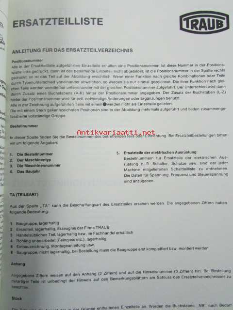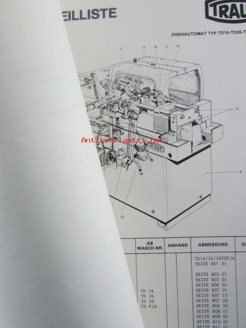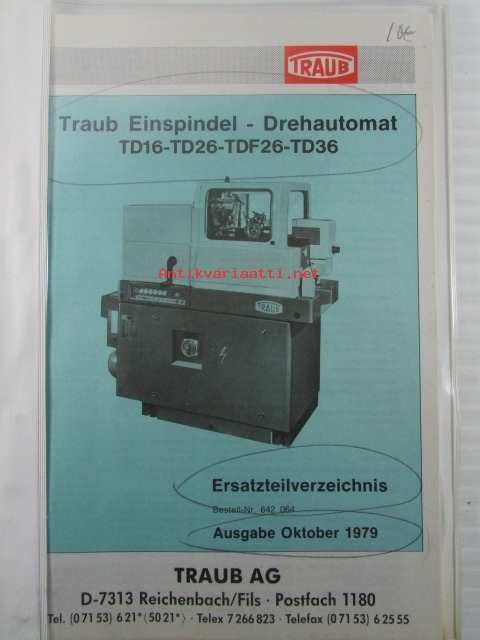 Traub Einspindel-Drehautomat TD16-TD26-TDF26-TD36 - Ersatzteilverzeichnis, Ausgabe Oktober 1979 - CNC työstökone