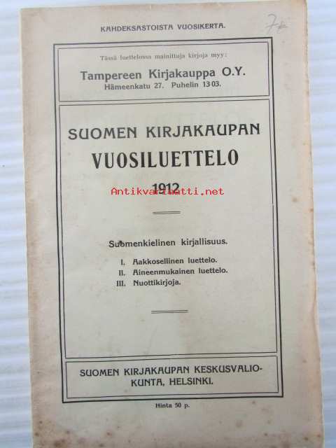 Suomen kirjakaupan vuosiluettelo 1912 - Årskatalog för finska bokhandeln 1910 - Suomenkielinen kirjallisuus