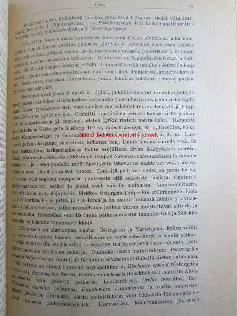 Suomenmaa Ahvenanmaan lääni II Maantieteellistaloudellinen ja historiallinen tietokirja, Lisäksi aakkosellinen hakemisto ja kartta, katso kuvista sisältö tarkemmin.