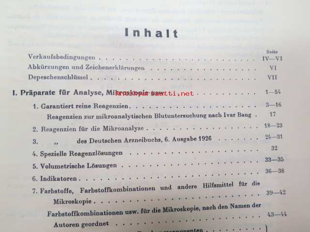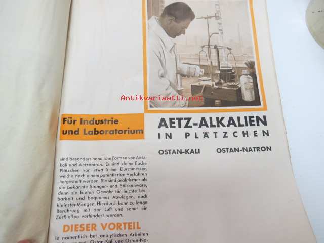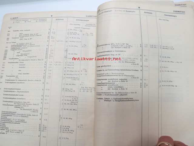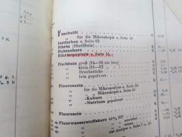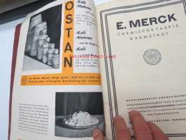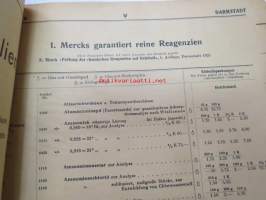 E. Merck, Darmstadt, 1932 Mai - I Präparate für Analyse, Mikroskopie usw. II Chemicalien, Präparate usw. III Mineralien und Sammlungen -reagensseja, kemikaaleja jne. teollisuuden ja laboratorioiden käyttöön, tuoteluettelo