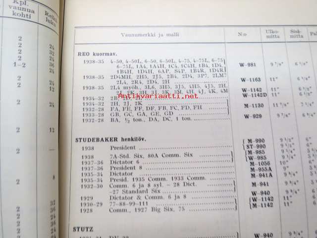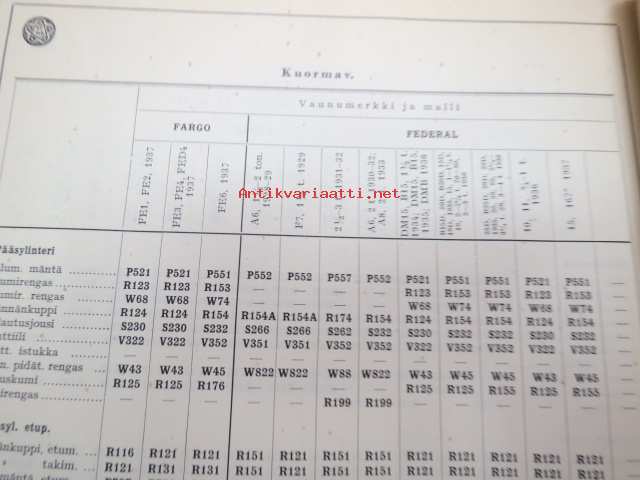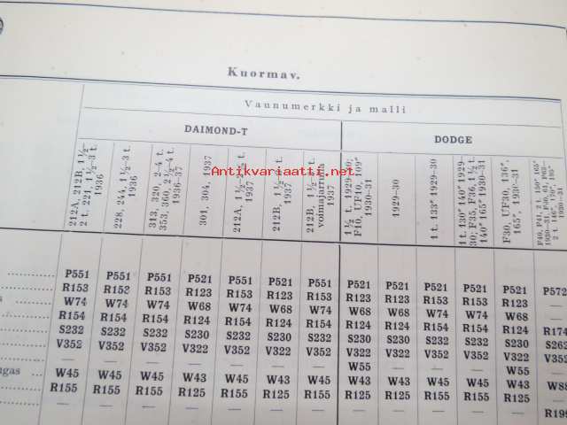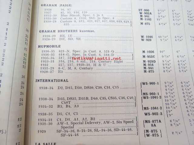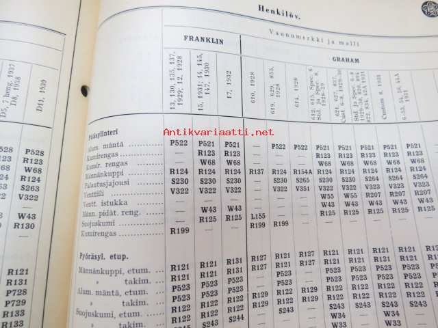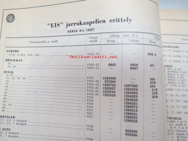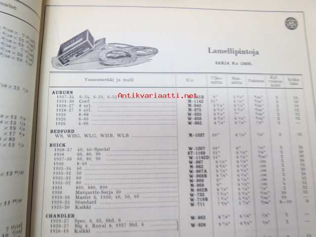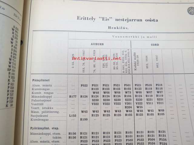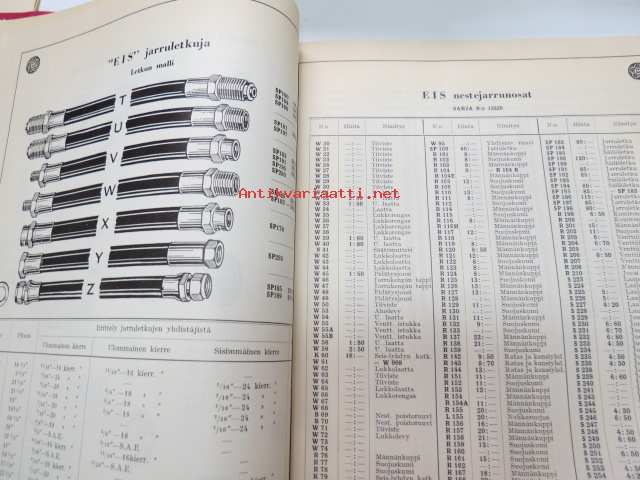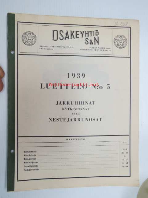 Osakeyhtiö S & N 1939 luettelo nr 5 Jarruhihnat, kytkinpinnat sekä nestejarruosat -varaosaluettelo