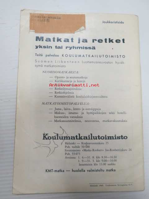 Koulumatkailutoimisto - Opintoretket 1965 -esite