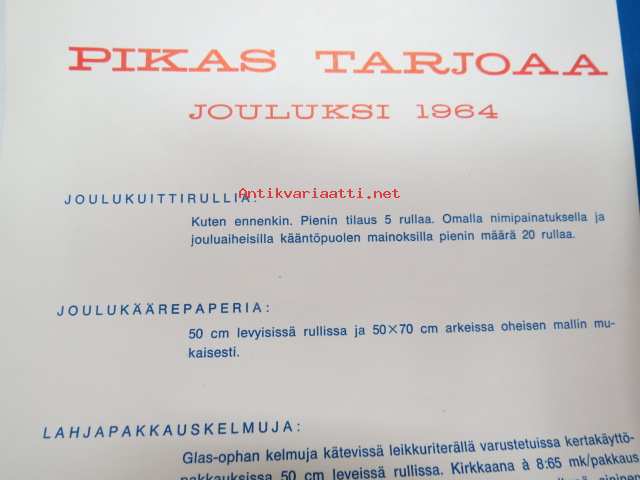 Pikas tarjoa jouluksi joulukuittirullia, jolukäärepaperia, esite, mallit mukana
