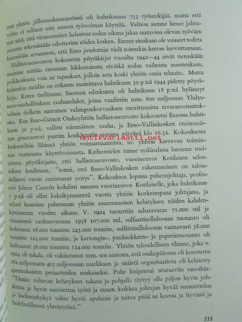 Enso-Gutzeit Osakeyhtiö 1872-1958 I-II -historiikki suomeksi / company history in finnish