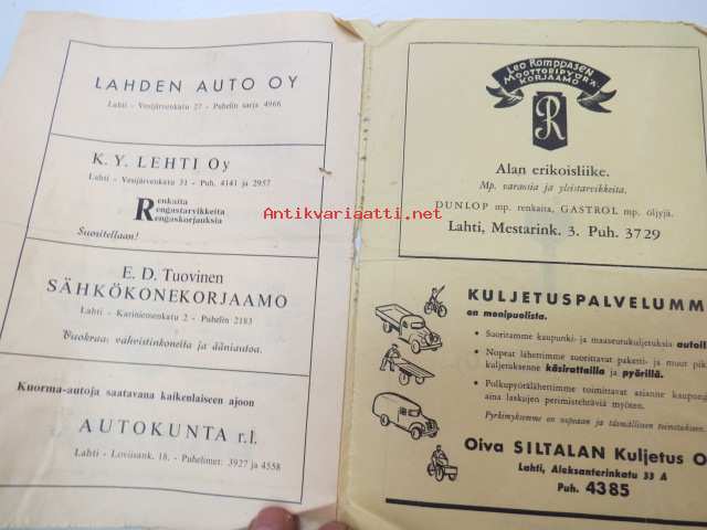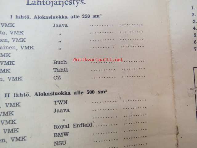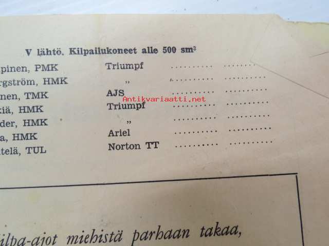 Kariniemen TT-ajot moottoripyörilä Pikku-Vesijärven radalla 28.7.1951 / Viipurin Moottorikerho ry -käsiohjelma