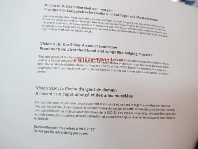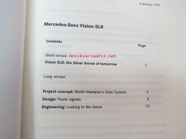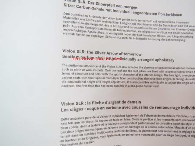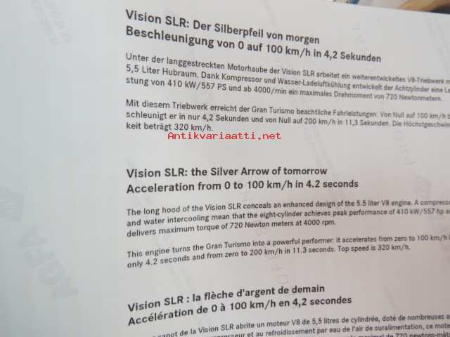 Mercedes-Benz Vision SLR Press Information - lehdistötiedotekansio värikuvineen ja tietoineen, urheiluauton konseptin esittelyä