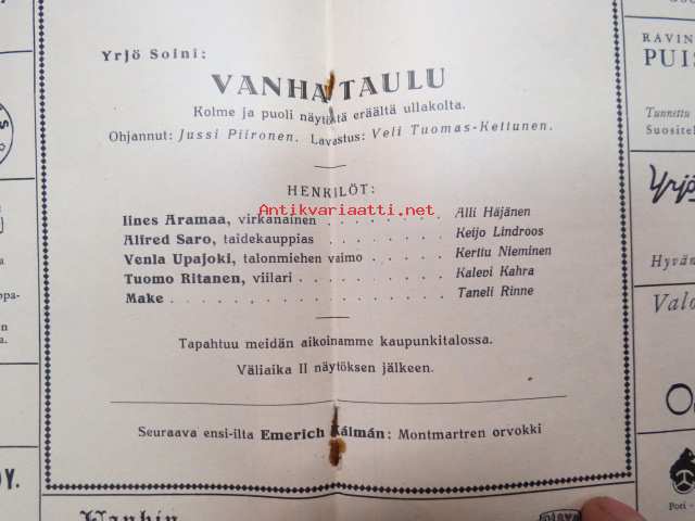 Porin Teatteri - Ohjelma 1955-1956 Yrjö Soini - Vanha Taulu