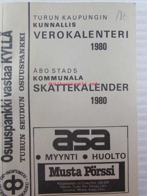 Turun kaupungin kunnallisverokalenteri 1980 vuoden 1979 tuloista