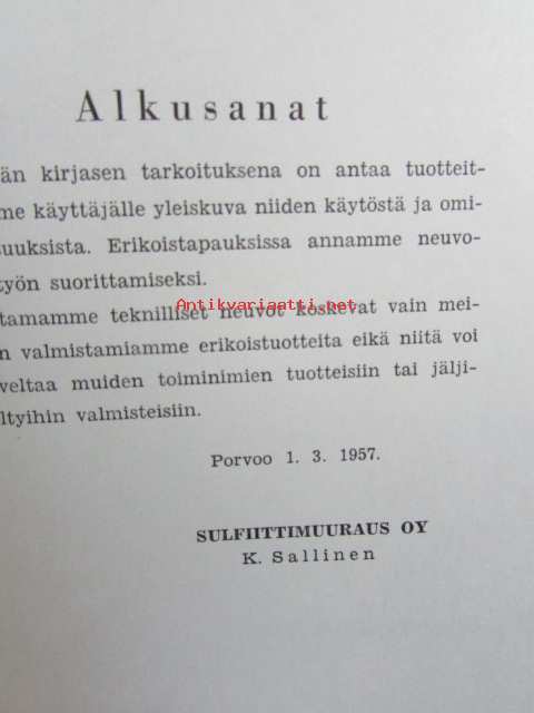Sulfiittimuuraus Oy, 195515 x 21 cm kirja.