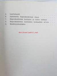 | Saatavilla | 1 kpl | | Julkaisuvuosi | 1955 | | Sivuja | 65 | | Painos | 1 | | Kunto | K2 | | Sidonta/painoasu | Sidottu (kovak.) | | Kielet | Suomi |