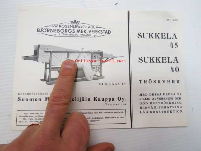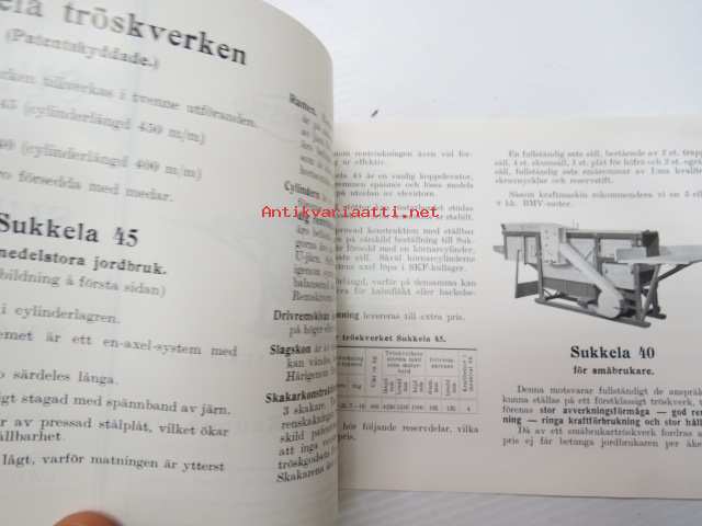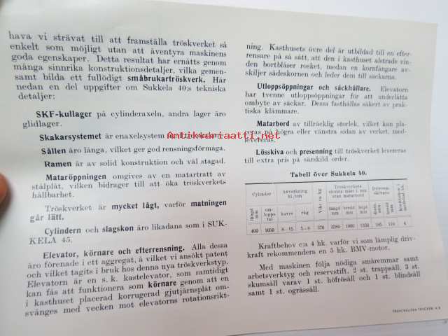 Sukkela 45, Sukkela 40 tröskverk -puimakoneet, myyntiesite ruotsiksi